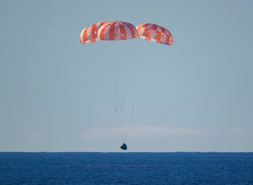 NASA’s gumdrop-shaped Orion capsule, dubbed Integrity, parachuted gently into calm seas off the Southern California coast shortly after 5:07 p.m. Pacific Time (0007 GMT on Saturday), concluding a mission that, four days earlier, took the astronauts 252,756 miles away from Earth, deeper into space than anyone had flown before.